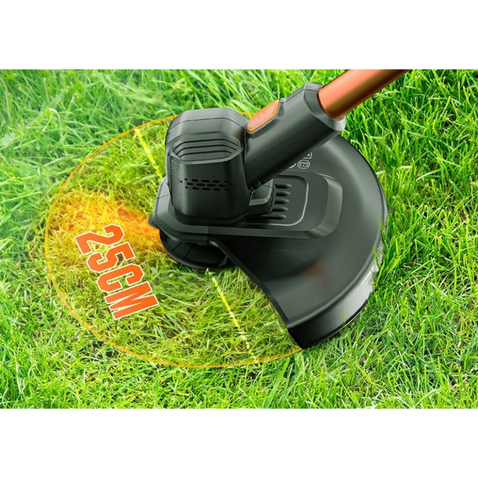 Тример справляється з покосом як дрібної трави, так і великих бур'янів. До того ж ви не прив'язані до мережі, оскільки пристрій працює від портативного акумулятора.