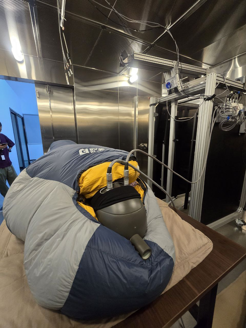 - Спальні мішки поміщають у герметичну камеру, в якій відтворюються різноманітні погодні умови — від зливи до наднизької температури повітря під час морозів. Останній метод дозволяє з точністю встановити температурну шкалу спальників, щоб користувачі мали змогу вибирати модель відповідно до сезону використання.