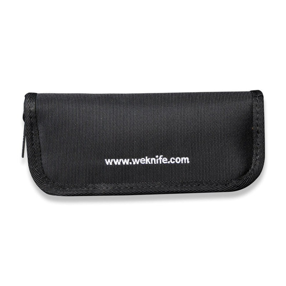 Відділення закривається на блискавку, забезпечуючи швидкий доступ до інструменту. Чохол постачається разом із серветкою для полірування клинка та фірмовими наклейками — приємний бонус для поціновувачів бренду WeKnife.