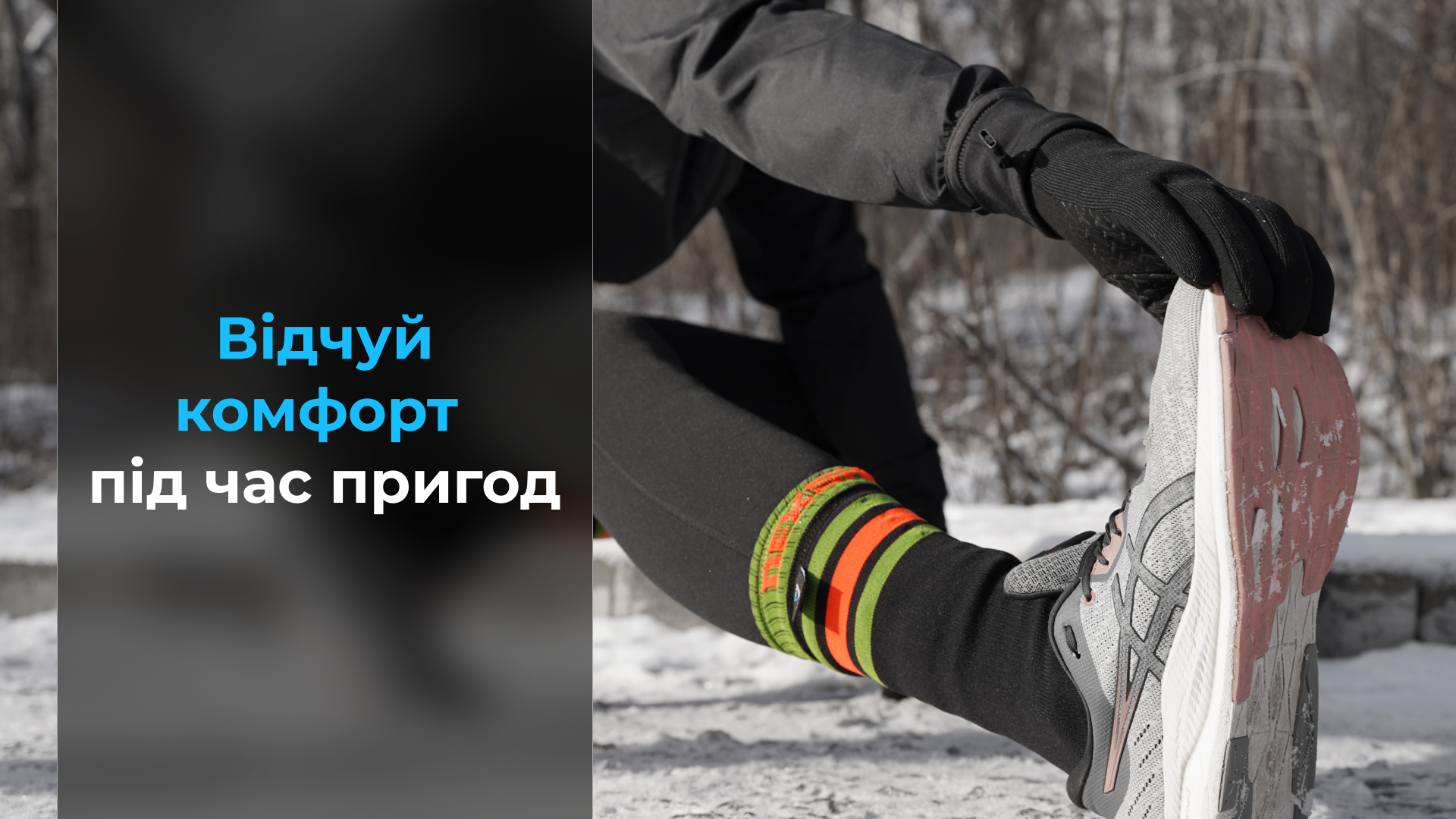 - Матеріал внутрішнього шару підтримує комфортну для ніг температуру і запобігає сповзанню шкарпеток. Це комбінація натуральної і теплої вовни овець породи Merino, акрилу з низькою теплопровідністю і нейлону.
