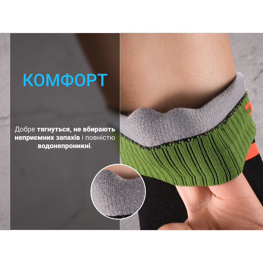 Прати шкарпетки необхідно вручну в прохолодній воді (не більш 40°C). Віджимати виріб заборонено, це може пошкодити мембрану.