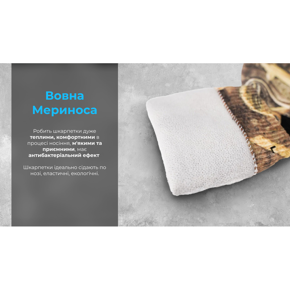 - внутрішня частина носка: 75% бавовна, 22% поліамід, 3% еластан.