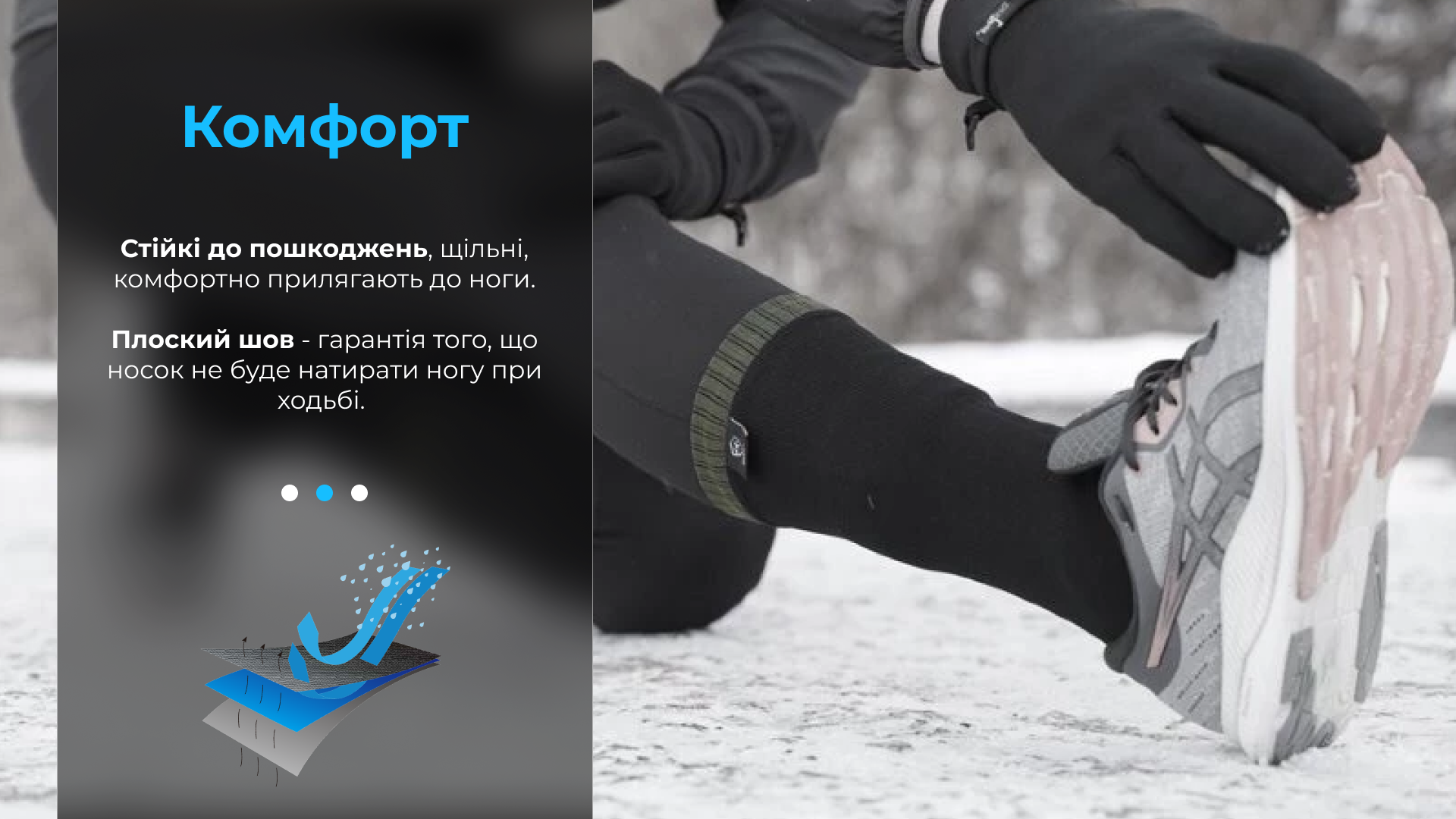 Прати шкарпетки необхідно вручну в прохолодній воді (не більш 40°C). Віджимати вироб заборонено, це може пошкодити мембрану.