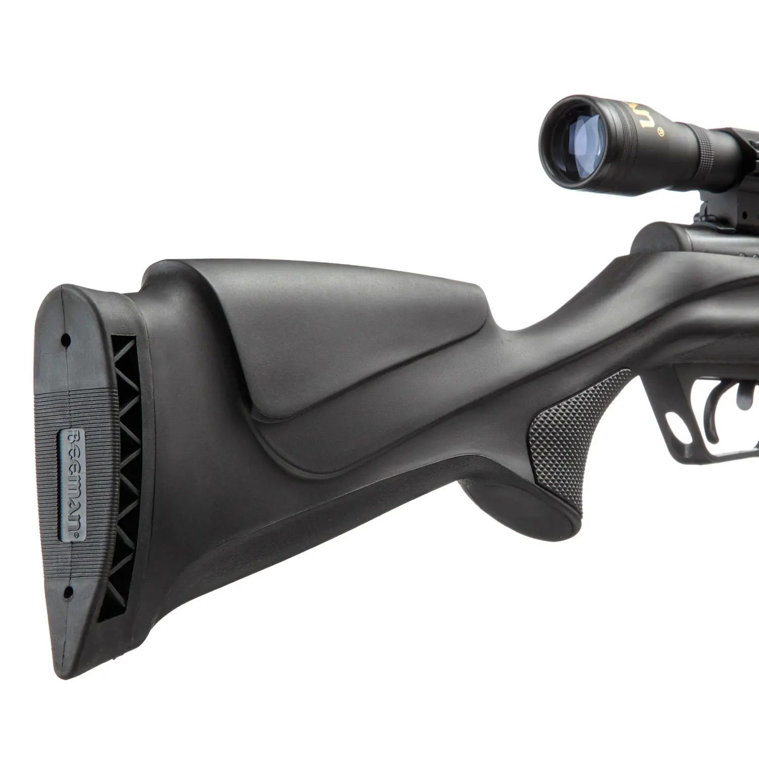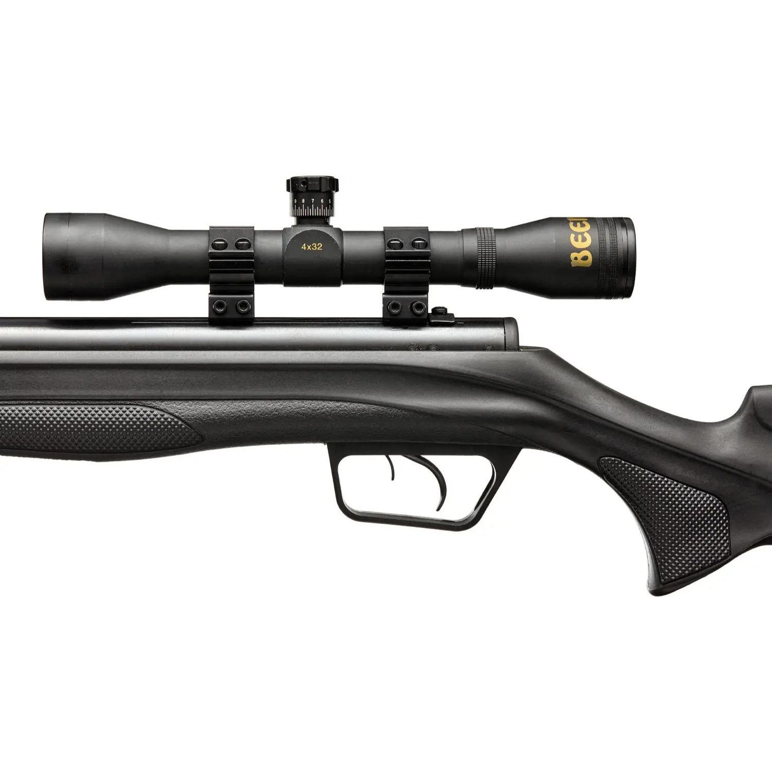 Модель комплектується оптичним прицілом Beeman 4х32 з сіткою Crosshair та на кільцями "Ластівчин хвіст".