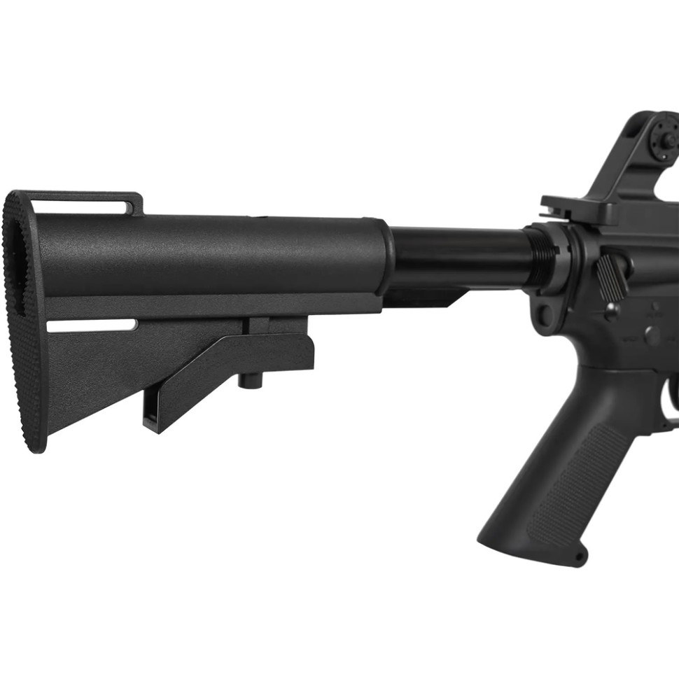 Репліка виконана у форматі стандартного M4 з телескопічним прикладом і класичним компонуванням органів управління. Платформа M4 забезпечує широку сумісність з магазинами і додатковими аксесуарами, а для установки тактичного обвісу на передню частину конструкція допускає заміну цівки на моделі з посадочними місцями або використання спеціальних кріплень.