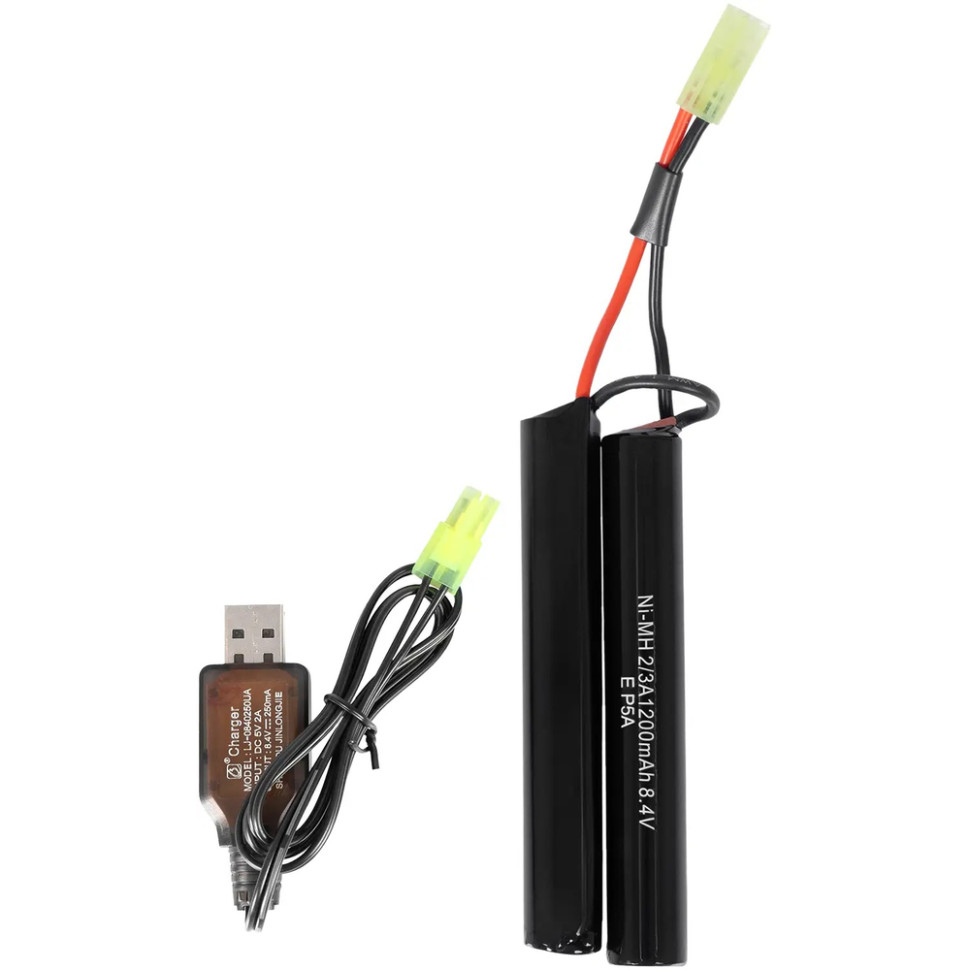 Передня алюмінієва цівка з рейками Пікатінні дозволяє швидко встановлювати тактичні аксесуари, а всі металеві деталі мають антикорозійне покриття і виготовлені з якісного сплаву для довговічності. Телескопічний приклад з міцного полімеру зручний у використанні, полегшує транспортування і одночасно призначений для розміщення акумулятора. Вбудована регульована система Hop-Up дає можливість точно налаштувати траєкторію BB-куль, а металевий гірбокс V2 гарантує стабільну роботу механіки і відкриває простір для майбутніх апгрейдів. Гвинтівка поставляється в чорному виконанні і комплектується акумулятором і бункерним магазином - готова до гри відразу після отримання.