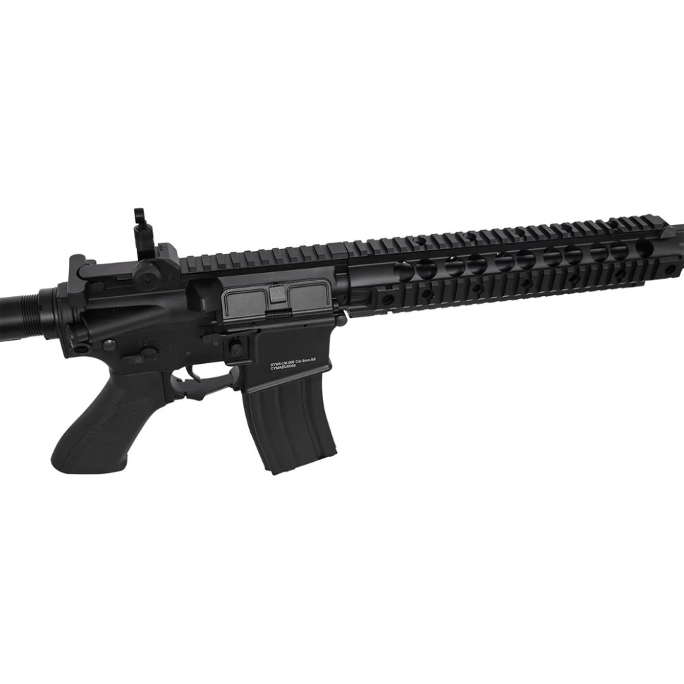 CYMA CM.006 — це страйкбольна електропневматична репліка (AEG) на базі карабіна AR-15/M4, виконана у стилі SR-16. Модель має повнорозмірні габарити та добре підходить для ігор на відкритих полігонах і змішаних дистанціях, коли важлива стабільна робота, хороша дальність і можливість комфортно вести вогонь як короткими, так і довшими чергами. Завдяки популярній платформі M-серії репліка сумісна з великою кількістю магазинів та аксесуарів, тому її легко налаштувати під власний стиль гри.