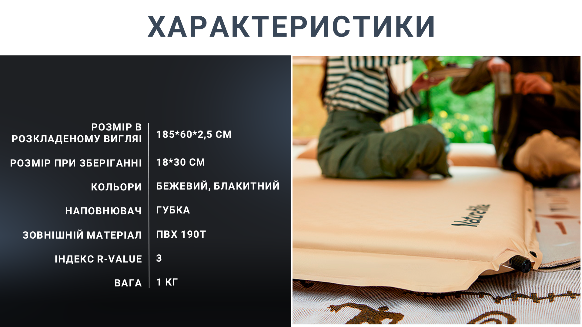 - килимок, що самонадувається для туризму, активного відпочинку;