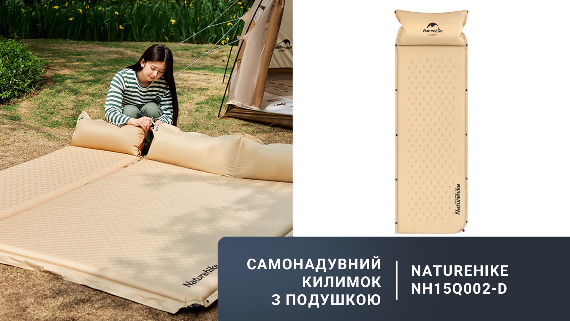 Килимок самонадувний з подушкою Naturehike NH15Q002-D, 25мм, бежевий