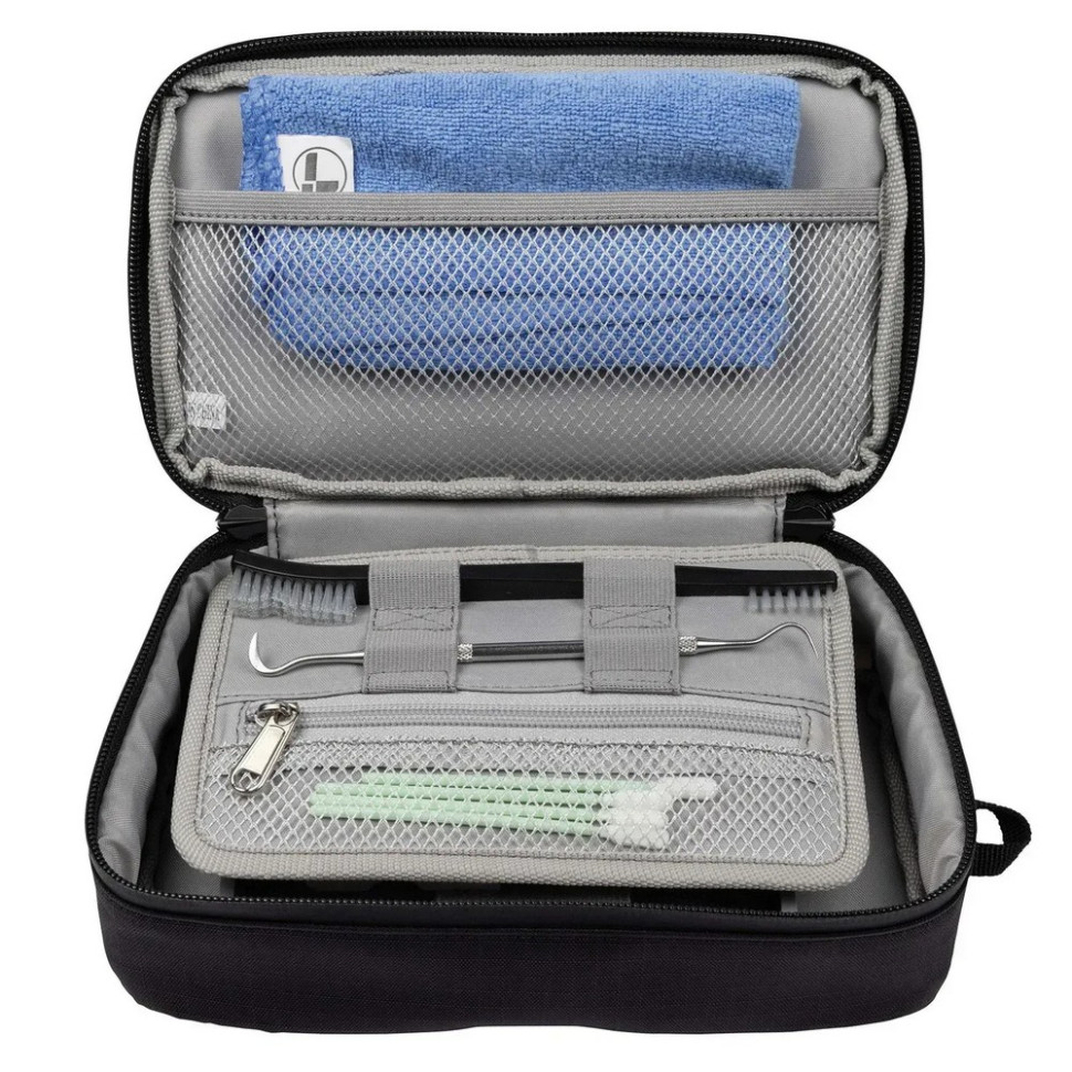 Комплект для обслуговування та зберігання інструментів Leatherman 833031 – це все, що потрібно для догляду за вашим багатофункціональним інструментом. У набір входить зручна точила для ножів, приладдя для чищення, килимок для організації робочого простору, м'яка серветка з мікрофібри і мастила. Додатково передбачені кюретка, щітка та тампони для детального очищення важкодоступних місць. Просторий кейс не лише спрощує зберігання та транспортування мультитулів, а й допомагає тримати все необхідне під рукою.
