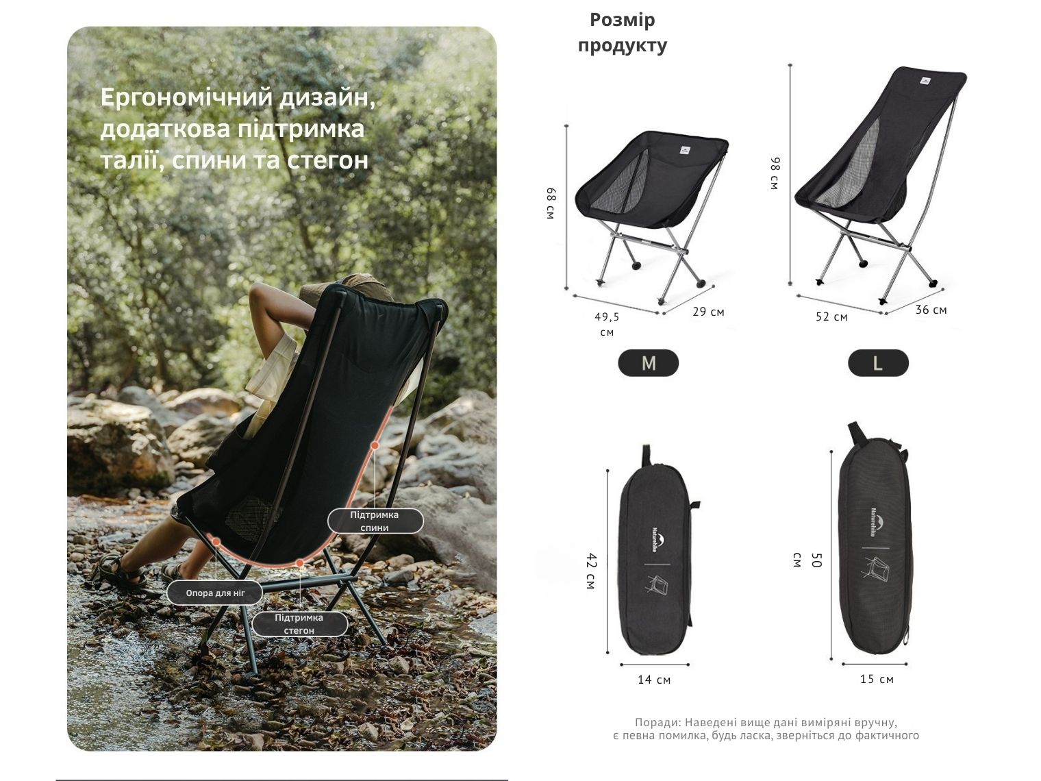 Опис складаного крісла Naturehike Stellaluna L04 CNK2450JJ015, розмір L, коричневого: