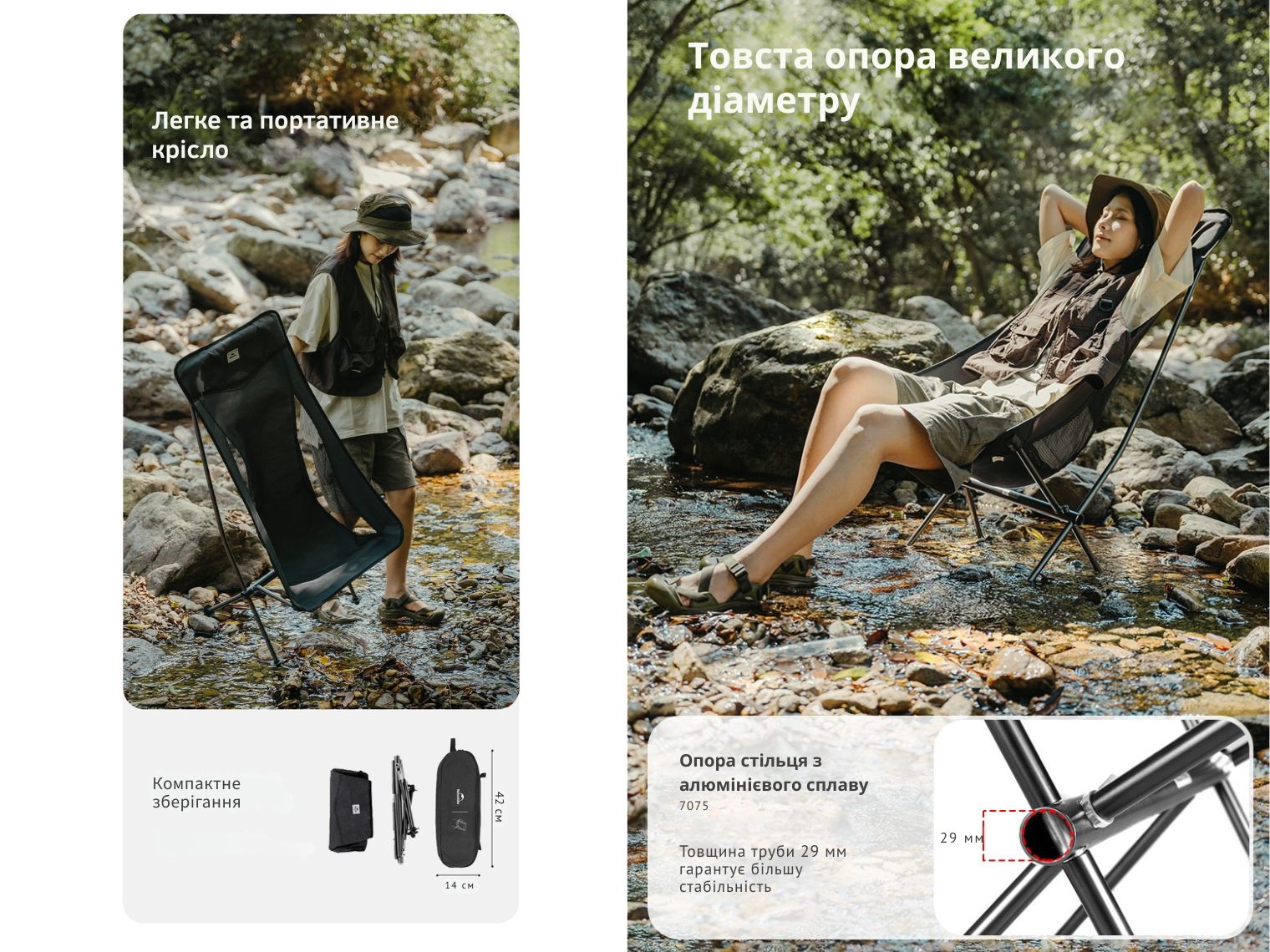 Крісло Stellaluna L04 — це запорука вашого комфорту вдалині від дому. Читайте улюблену книгу, насолоджуйтесь улюбленим напоєм, дрімайте в тіні після насиченого дня — завдяки складаному кріслу від Naturehike ви можете подарувати своєму тілу повне розслаблення та отримувати задоволення від кожного моменту!