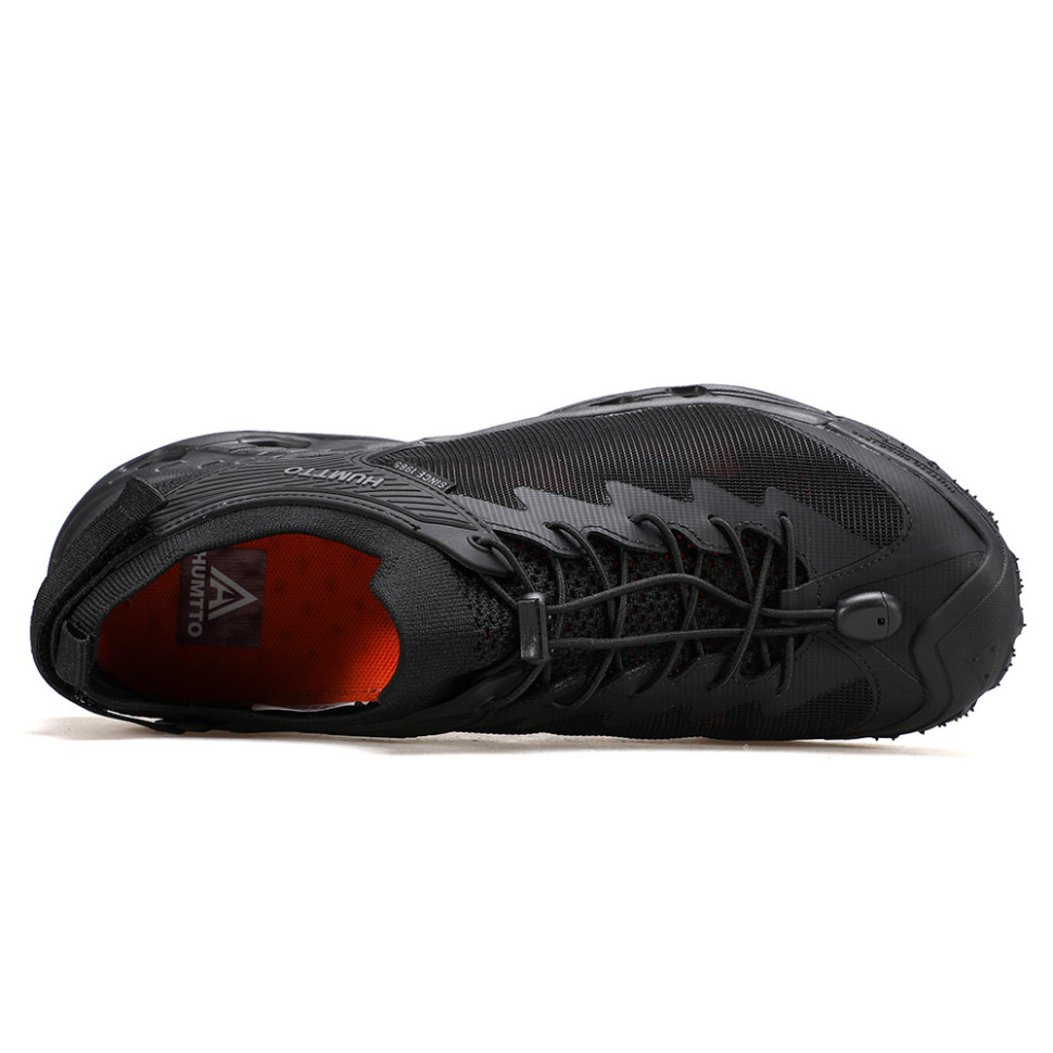 - Ефективне відведення води. Завдяки наскрізним отворам у підошві та сітчастому верху вода витікає з кросівок за лічені секунди. Це допомагає взуттю не набирати вагу після занурення: воно стає легким відразу після виходу на берег і сохне прямо під час ходьби.