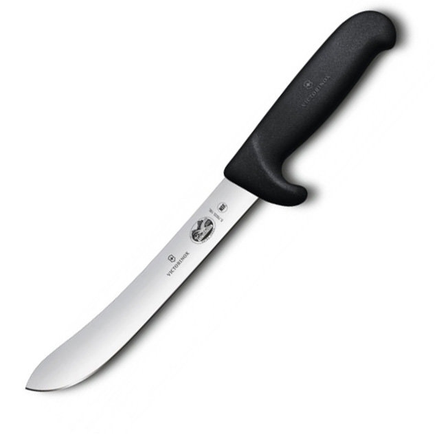 Професійний ніж м'ясника (обвалювальний) Fibrox Butcher з лезом 18 см (гладке) і чорною ручкою SAFETY NOSE Victorinox 5.7603.18 L Швейцарія