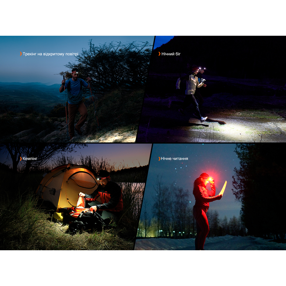 - налобний ліхтар для бігових тренувань та активного відпочинку;