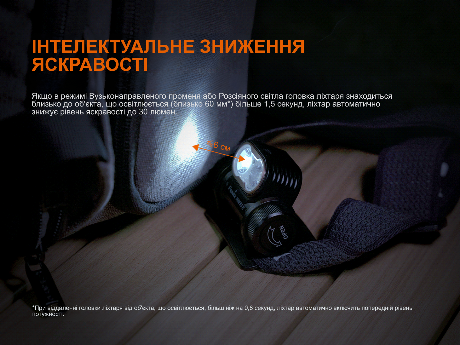 - налобний ліхтар Fenix HM55R з інтелектуальним датчиком наближення;