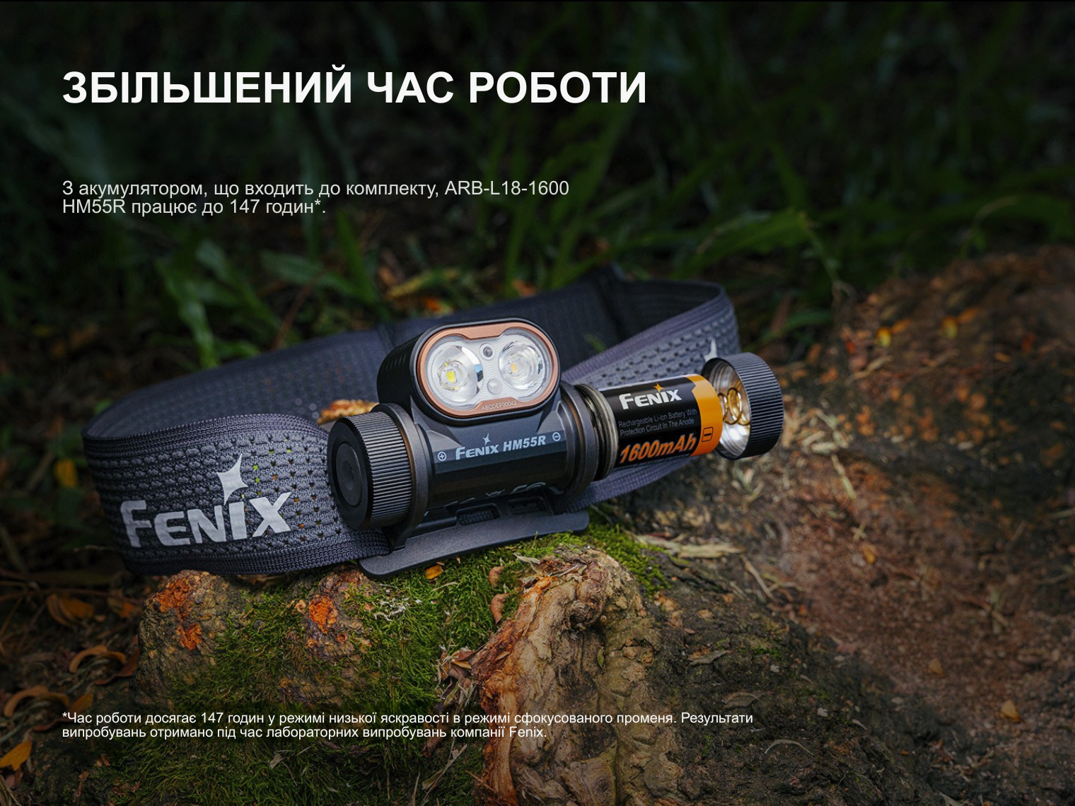 Налобний ліхтар Fenix HM55R — це універсальна модель для кемпінгу, робіт на будмайданчику, вечірніх пробіжок та інших активностей просто неба.