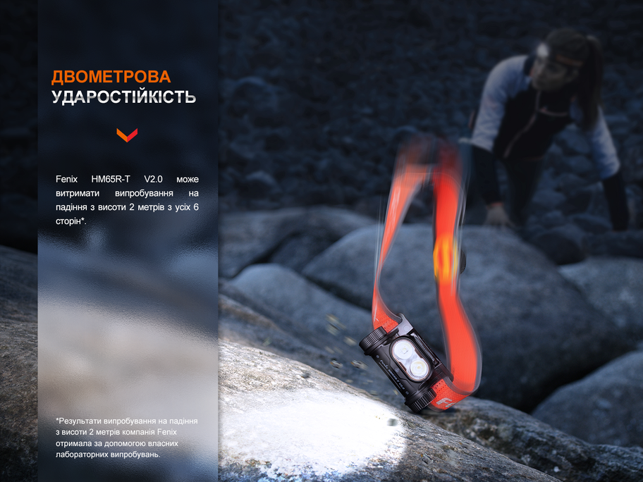 Опис налобного ліхтаря Fenix HM65R-T V2.0, чорного: