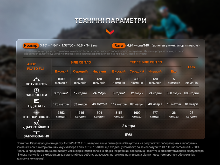 - налобний ліхтар для трейлранінгу, подорожей та повсякденного використання;