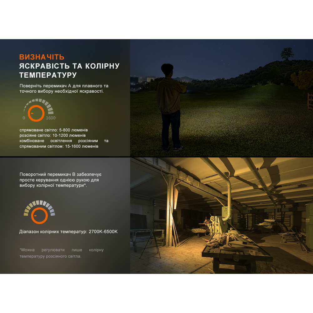 Наявність 10 режимів роботи яскравістю до 1600 лм з можливістю плавного регулювання колірної температури світла робить ліхтар Fenix CL27R одним із найфункціональніших в асортименті бренду. Модель можна використовувати для різних цілей: від домашнього освітлення та кемпінгу до виконання промислових робіт, адаптуючи світло до поточних потреб.