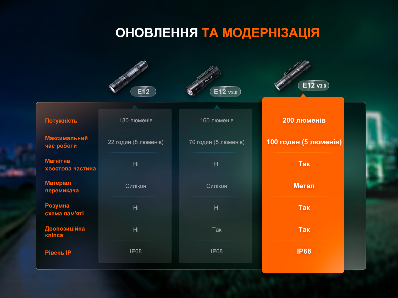 Опис ручного ліхтаря Fenix E12 V3.0: