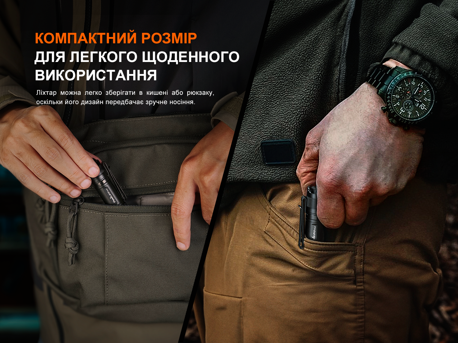 Розміри ліхтаря не перевищують 81,5 x 19,3 x 17,4 мм, тому його можна носити в сумці, у кишені одягу, кріпити на поясі або до головного убору — способи використання та транспортування обмежуються лише вашою фантазією.