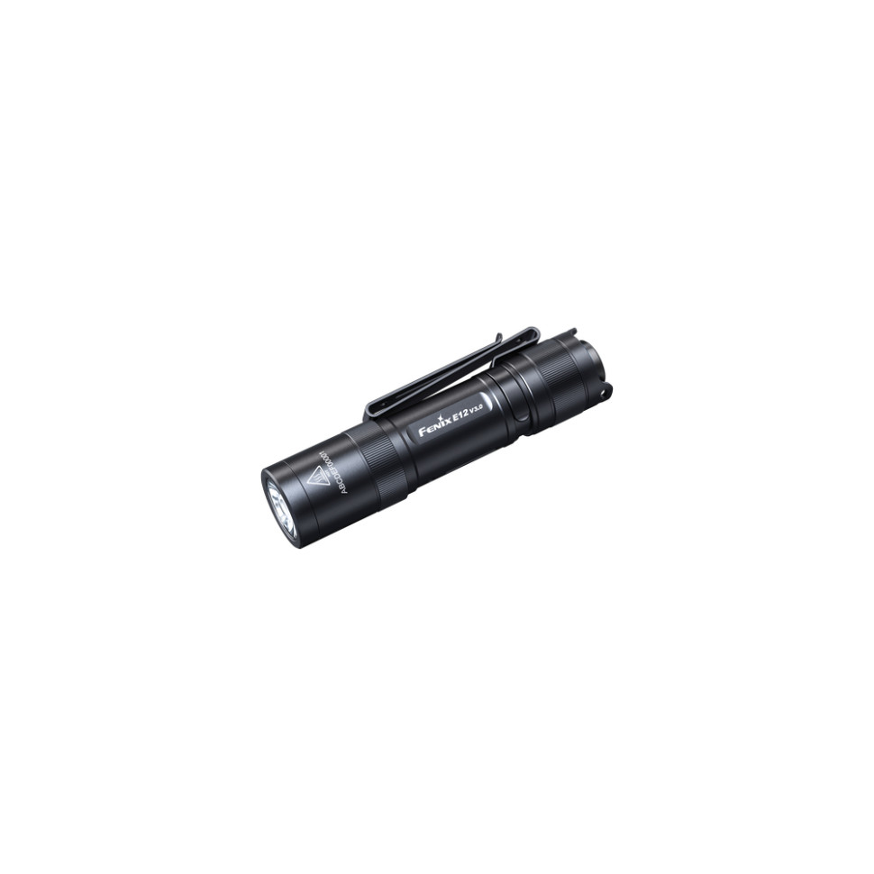 Модель Fenix E12 V3.0 стала третім поповненням у сімействі кишенькових ліхтарів E12 та обійшла своїх попередників у більшості характеристик, включно з яскравістю світла, що сягає 200 люмен, та автономністю роботи, яка підвищилася до 100 год. Світловий потік генерується світлодіодом Luminus SST20. Колірна температура променя складає 6000К (холодне біле світло), внаслідок чого збільшилася далекобійність променя до 78 м.