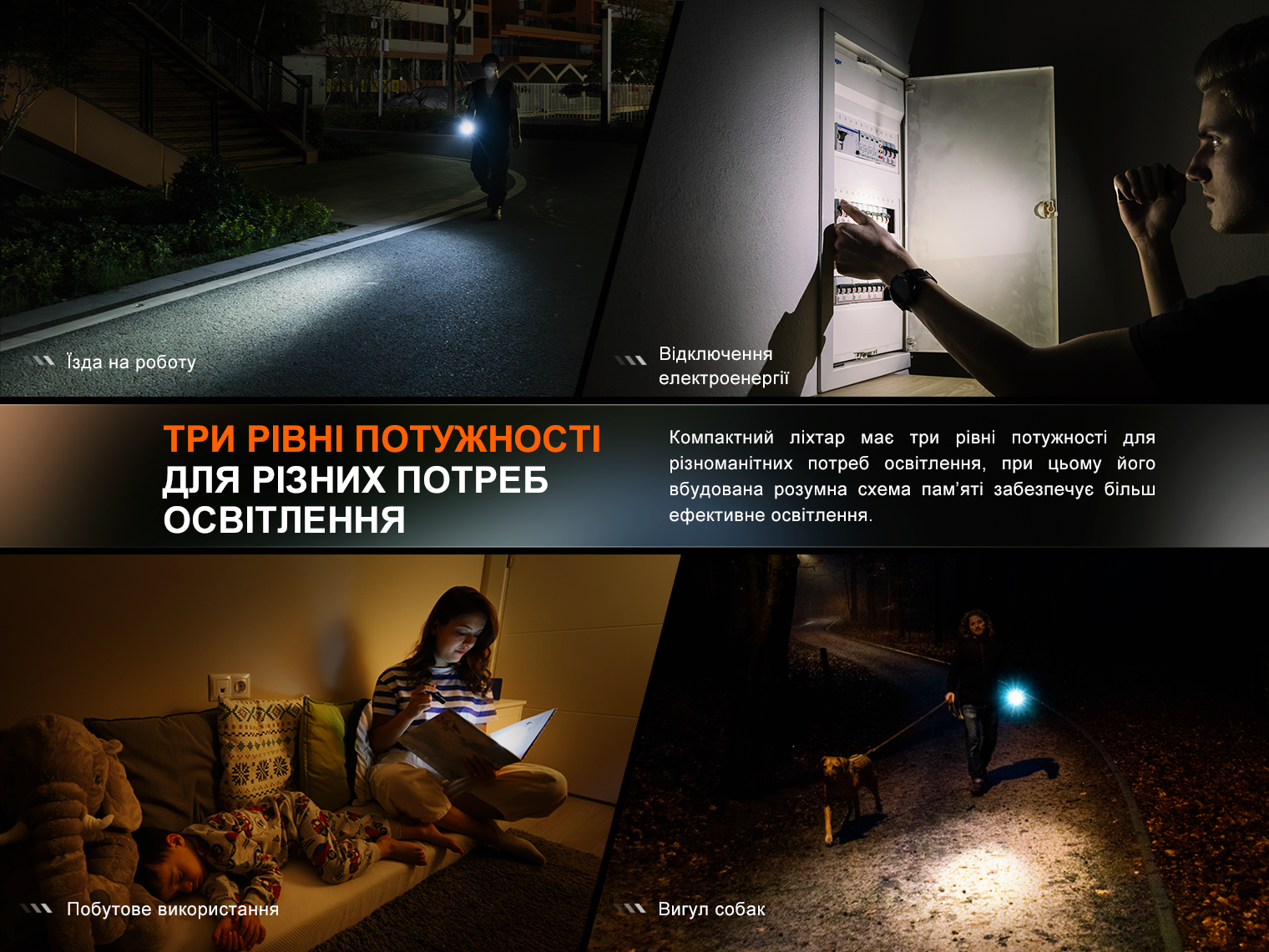 Ліхтар запрограмований на 3 режими з постійним освітленням: