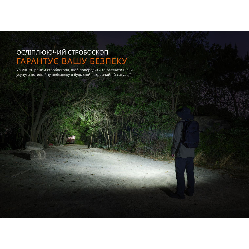 - Турбо: 3600 лм – 37100 кд – 3 год 41 хв – 385 м;