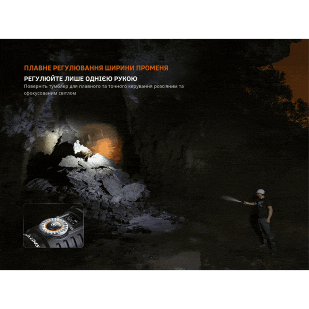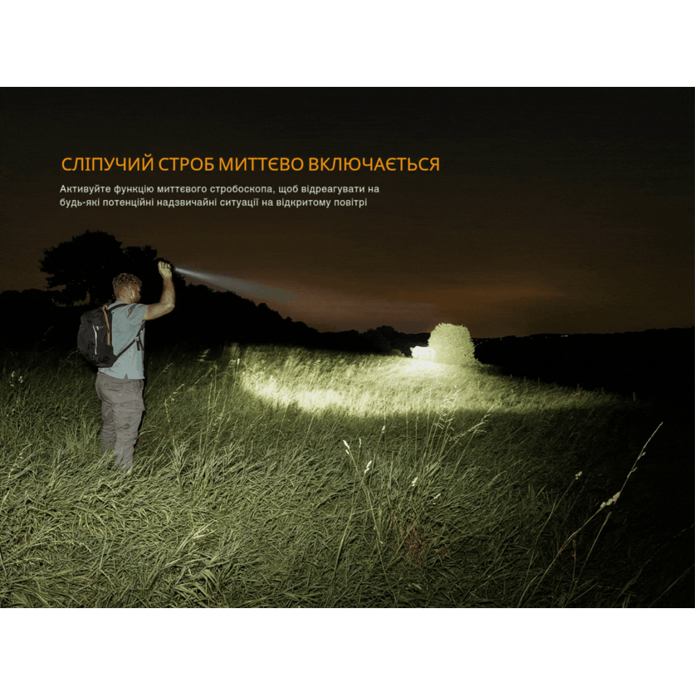Зверніть увагу, що інтенсивність та далекобійність світла у кожному режимі відрізняється залежно від встановленої ширини променя (для прожектора ці показники в режимі Турбо складають 6750 кд та 164 м, а для сфокусованого світла — 57600 кд та 480 м відповідно).