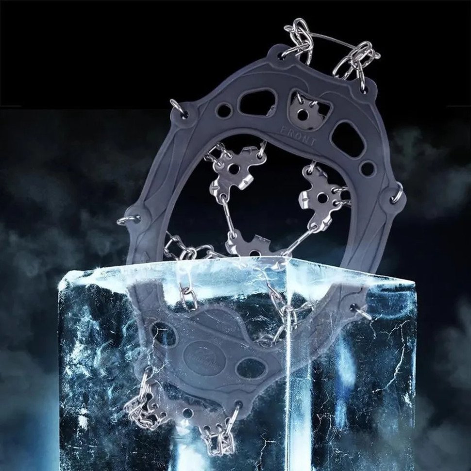 Льодоступи оснащені 19 шипами, які забезпечують надійне зчеплення зі слизькою поверхнею під час трекінгу, альпінізму та піших подорожей у зимовий сезон.