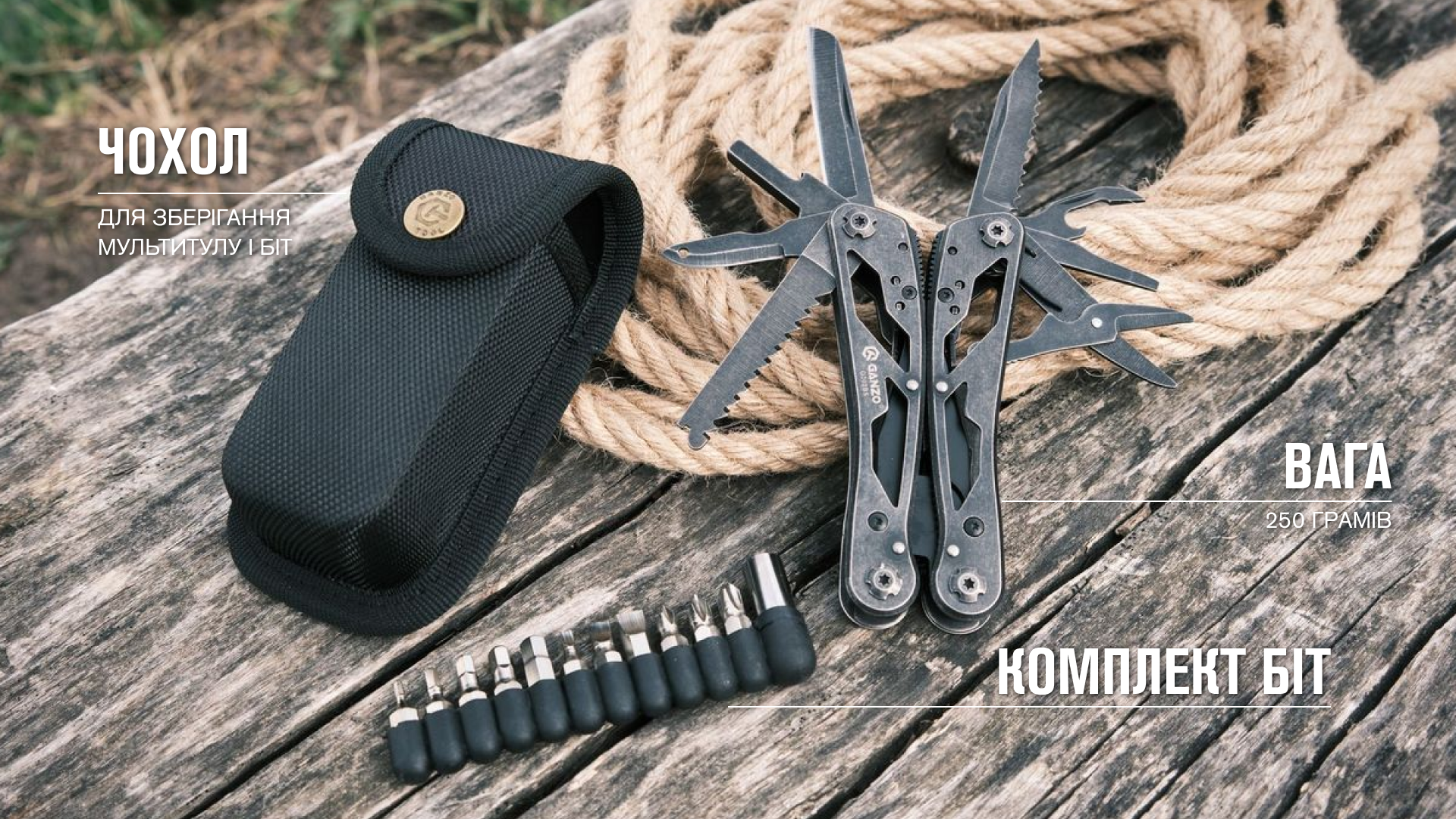 Виробник доповнив комплект фірмовим чохлом для зберігання мультитулу та його захисту від подряпин під час транспортування.