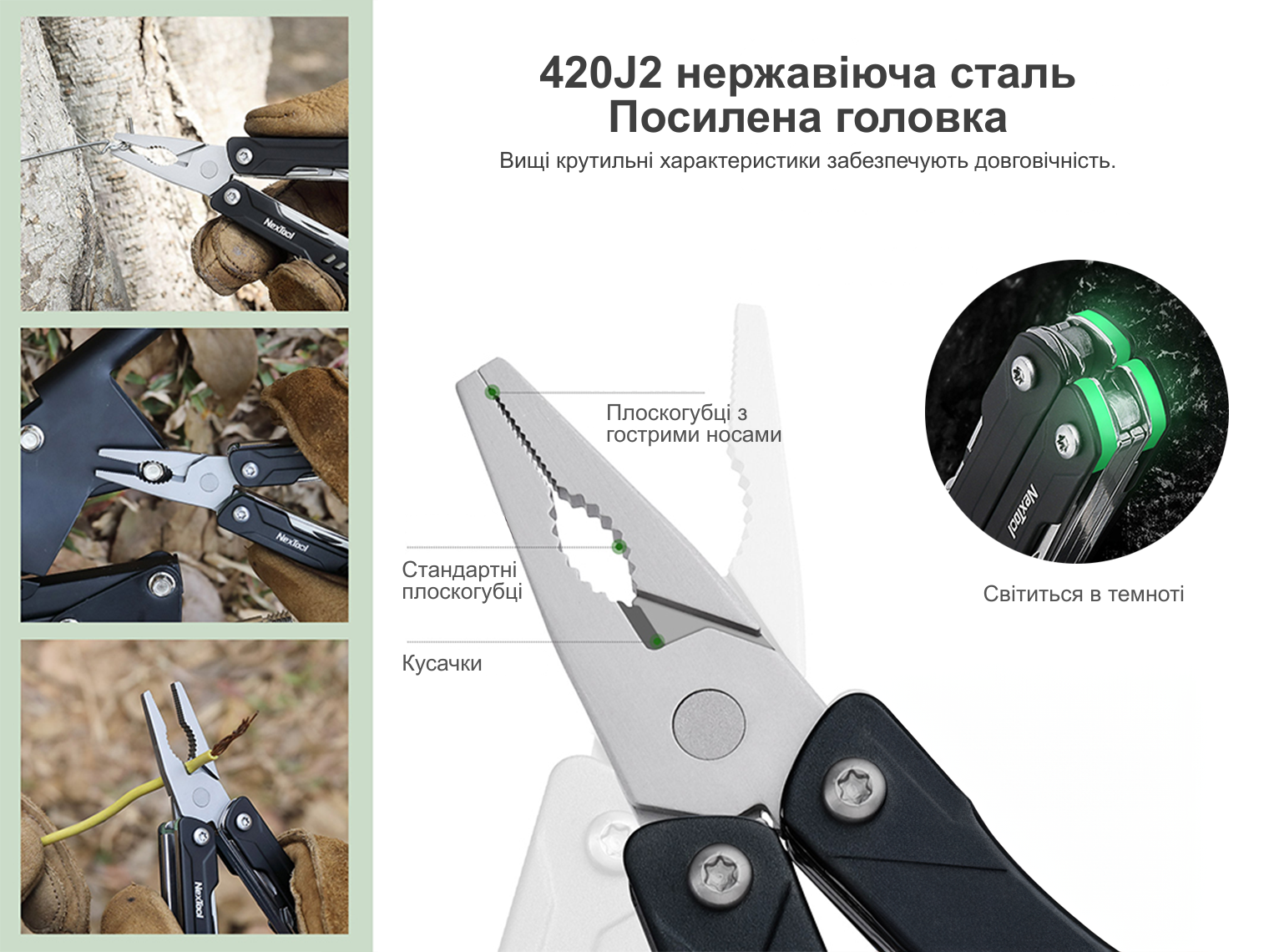 - кишеньковий мультитул NexTool Mini Sailor Pliers S11 з вбудованими вставками, що світяться;