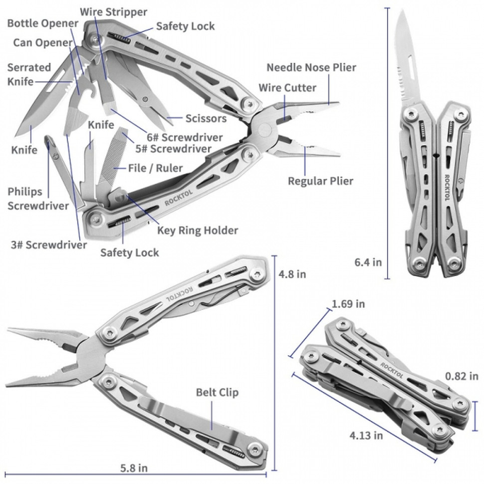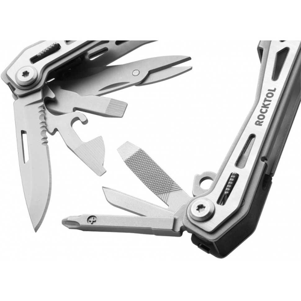 Мультитул Rocktol SK03 оснащений безліччю інструментів, які роблять його універсальним помічником у різних ситуаціях. Ось перелік опцій інструментів, включених до цього мультитула: