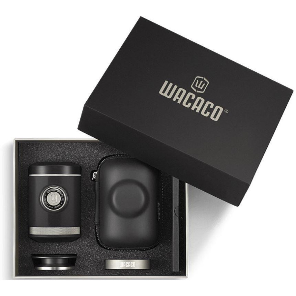 - набір Wacaco складається з ручної кавоварки Picopresso, захисних чохлів, стенда-підставки;