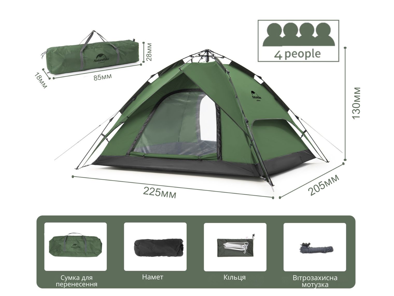 Опис чотиримісного автоматичного намету Naturehike NH21ZP008, темно-зелений