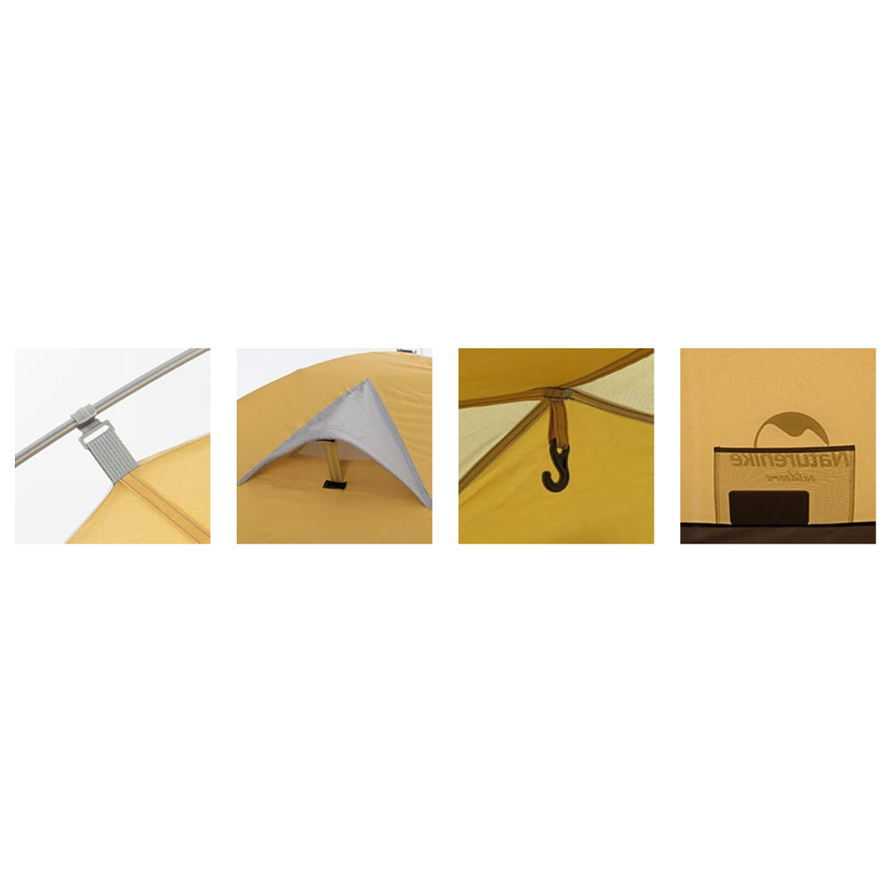 Внутрішня і зовнішня частина намету виготовлені з довготривалої поліефірної тканини 210T. Цей матеріал забезпечує міцність і стійкість до механічних пошкоджень, роблячи намет стійким у різних умовах. Ступінь захисту від сонячних променів SPF 50+ забезпечує безпеку і комфорт навіть у яскраві дні.