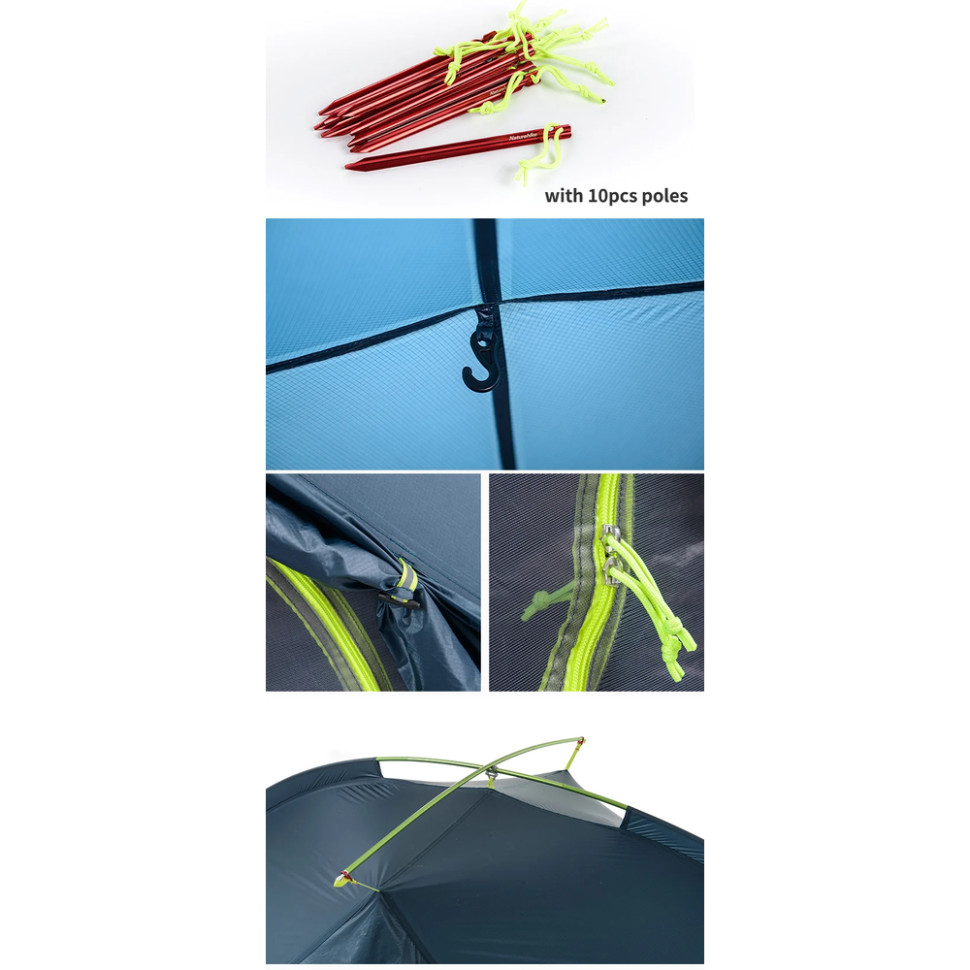 Намет Naturehike Tagar належить до надлегкого спорядження для активного відпочинку. Ви можете брати його у туристичну подорож, трекінг, тривалі походи у весняно-осінній період — завдяки вазі лише 1,2 кг (без урахування кілочків) модель мінімально впливає на вагу всього спорядження, пропонуючи надійне укриття від негоди для 1-2 користувачів.
