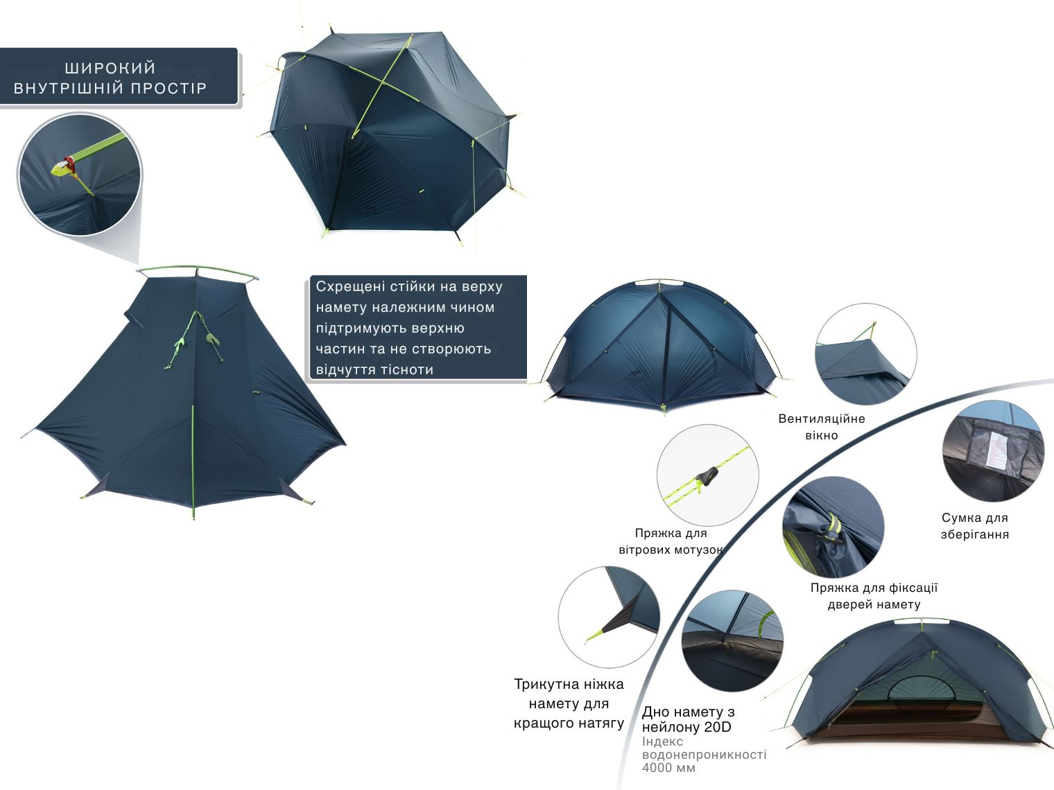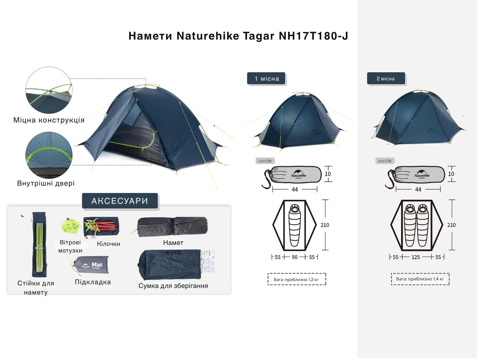 Опис двомісного намету Naturehike Tagar NH17T180-J, темного блакитного: