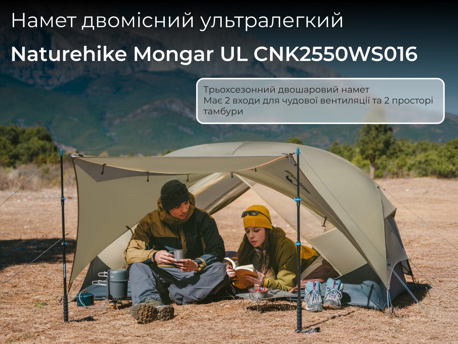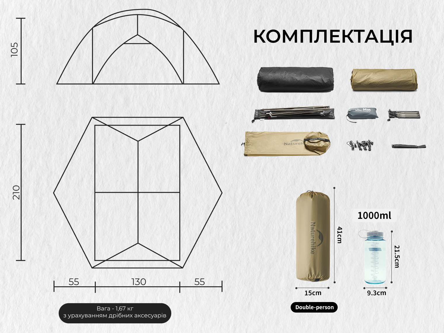 Опис надлегкого двомісного намету Naturehike CNK2550WS016, коричневого: