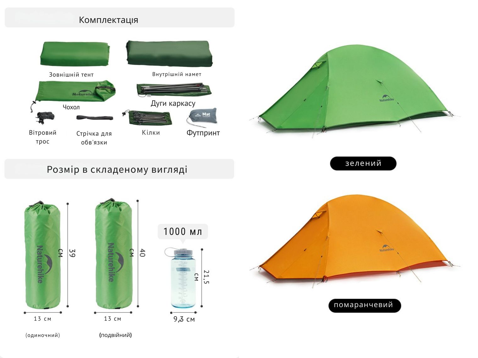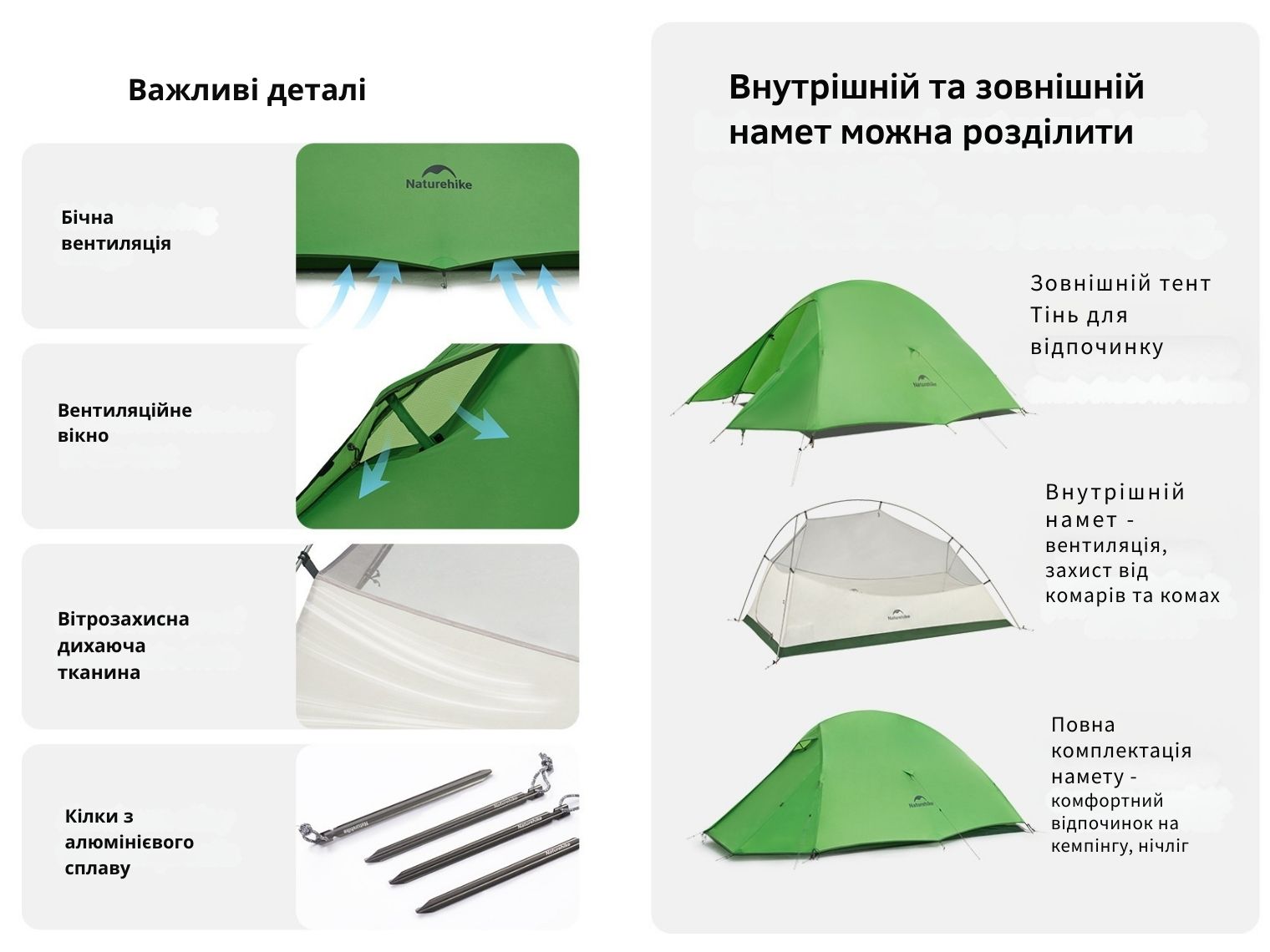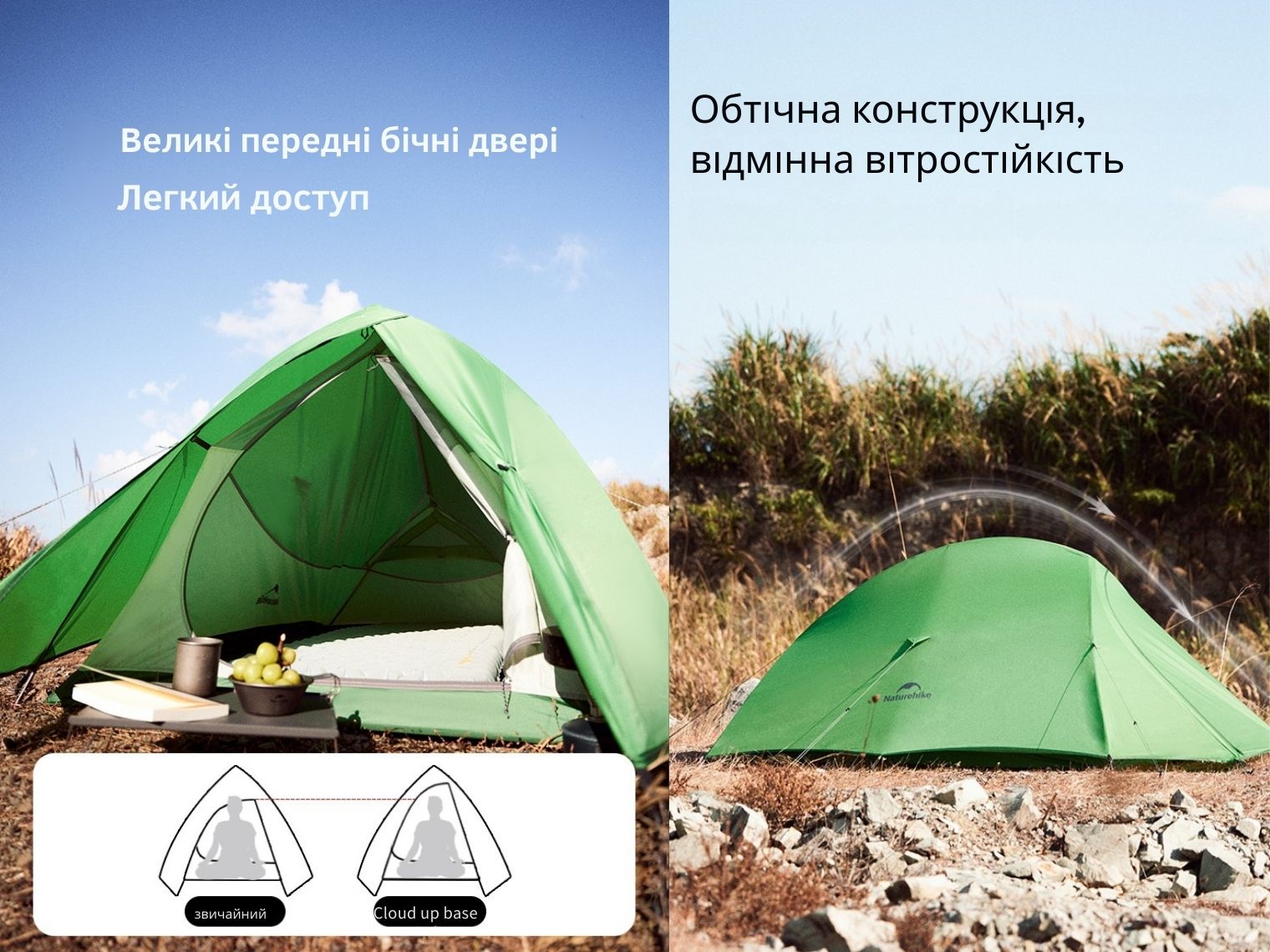 Опис надлегкого двомісного намету Naturehike Cloud Up Base 2 CNK2450WS032, зеленого: