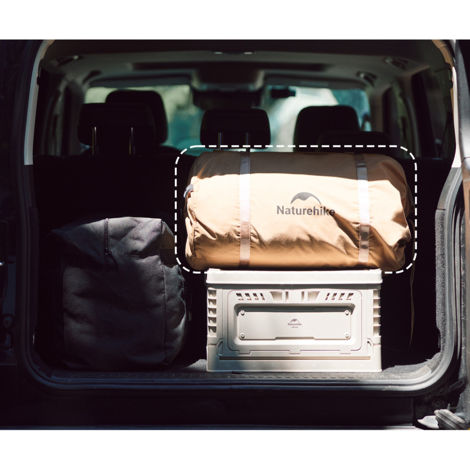 Намет складається до розмірів 55 x 28 x 28 см та зберігається у сумці зі стягувальним ременем.