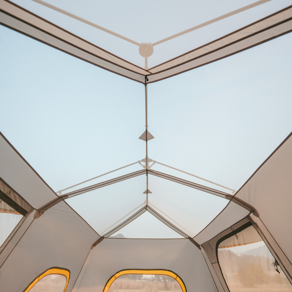 Швидкозбірний намет Naturehike Cape 8.4 CNK2450WS050 сягає розмірів 305 х 278 х 188 см після встановлення, пропонуючи величезний простір для відпочинку шести осіб. Конструкція дозволяє встановити каркас за лічені хвилини без спеціальних інструментів, а прямі стіни формують просторий «будиночок» з високою стелею 188 см, де можна вільно стояти та пересуватися.