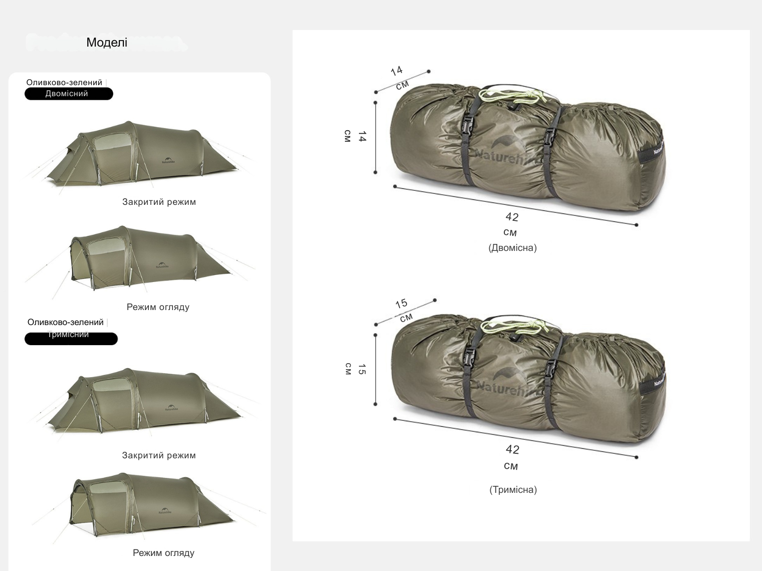 - намет Naturehike Opalus з двошаровою конструкцією;