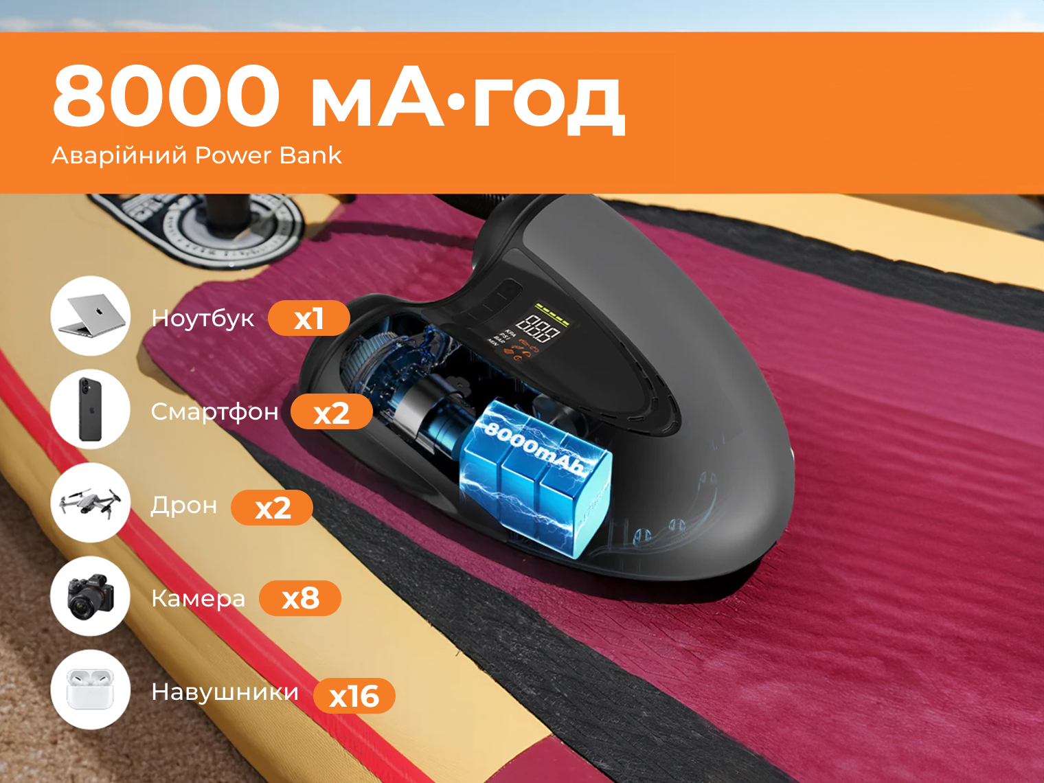- акумулятор — 8000 мА·год;