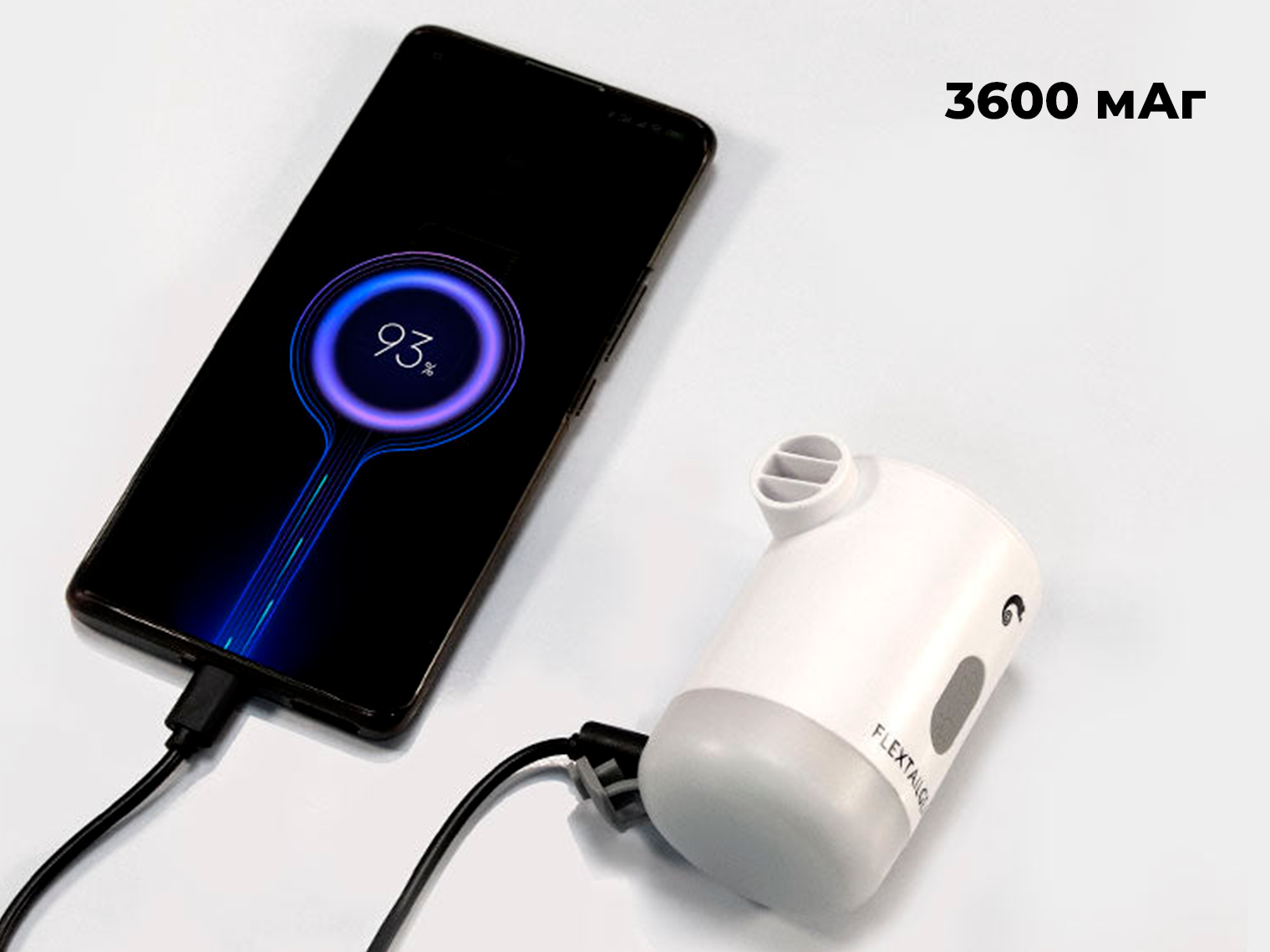 - Power Bank. Вбудований акумулятор ємністю 13,32 Вт·год не тільки живить насос — з його допомогою можна заряджати дрібну техніку, як смартфон, кейс для навушників чи смартгодинник. Для заряджання призначений USB порт з відповідним зарядним кабелем у комплекті.
