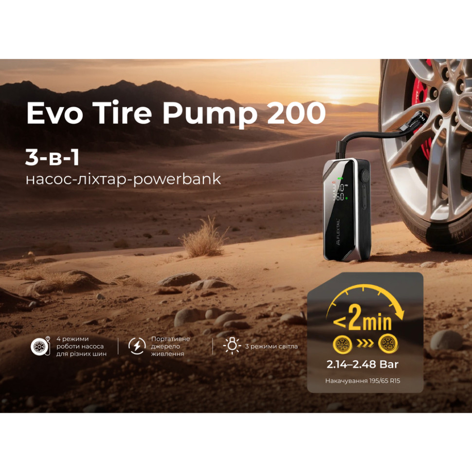 Насос-ліхтар-powerbank автомобільний Flextail Evo Tire Pump, 150 PSI, 2000 mAh
