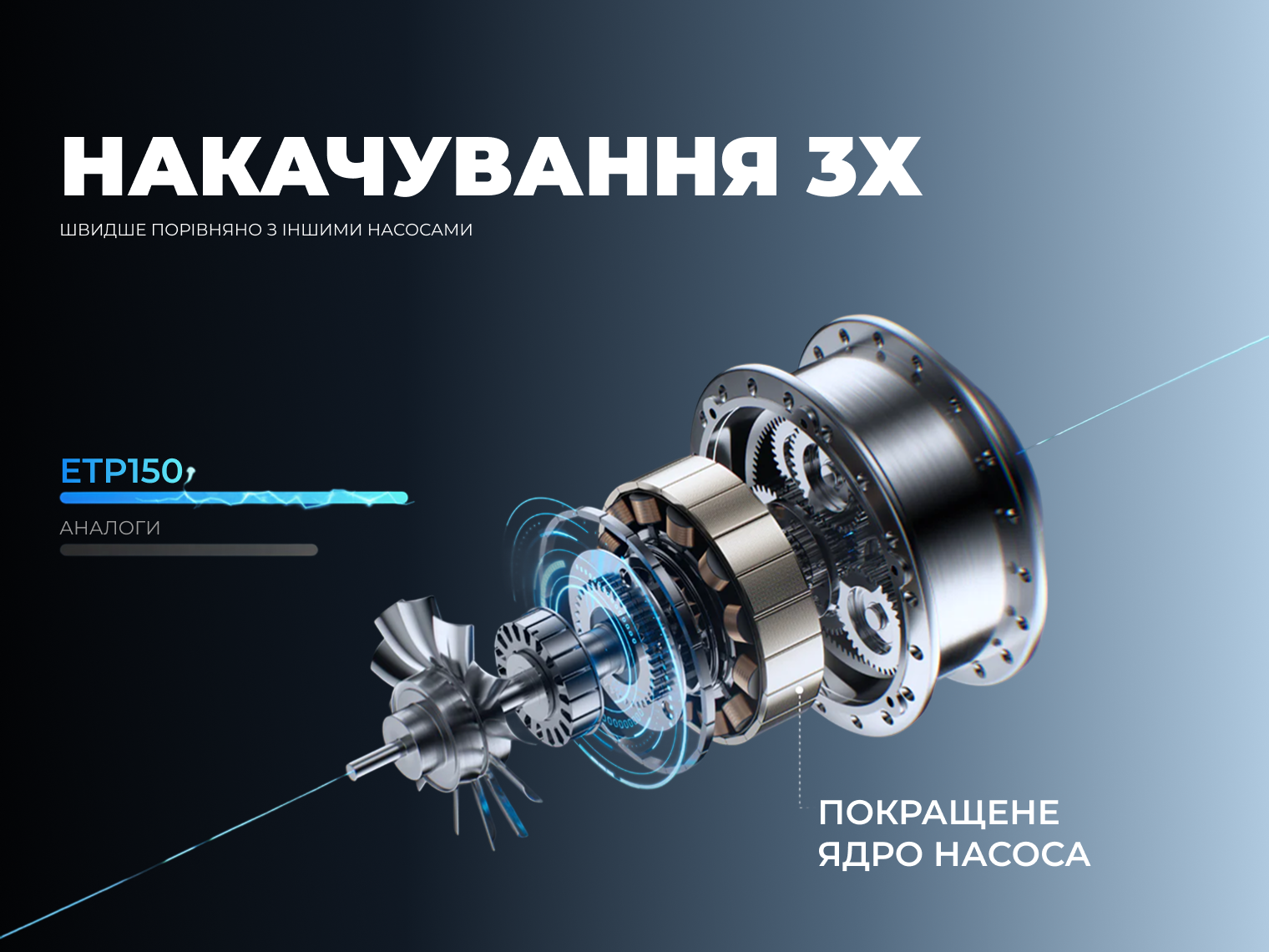 Енергосистема на базі трьох Li-ion елементів (16.65 Вт·год) забезпечує до 20 хв безперервного накачування. Це дає змогу пристрою працювати значно довше за аналоги, що особливо важливо під час тривалих подорожей або при обслуговуванні кількох транспортних засобів поспіль.