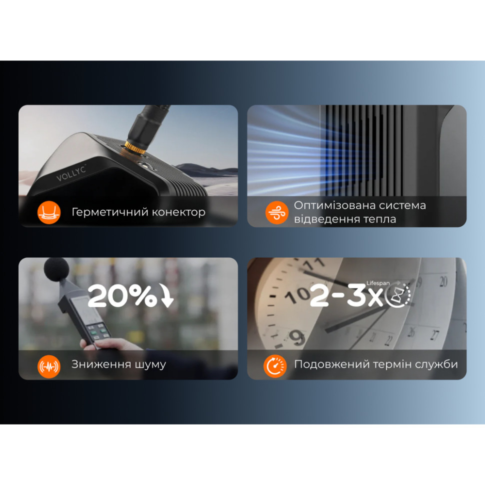 Міцна конструкція має вбудований захист від перегріву, а оновлена внутрішня система працює з рівнем шуму до 75 дБ, що на 20% тихіше за аналоги.