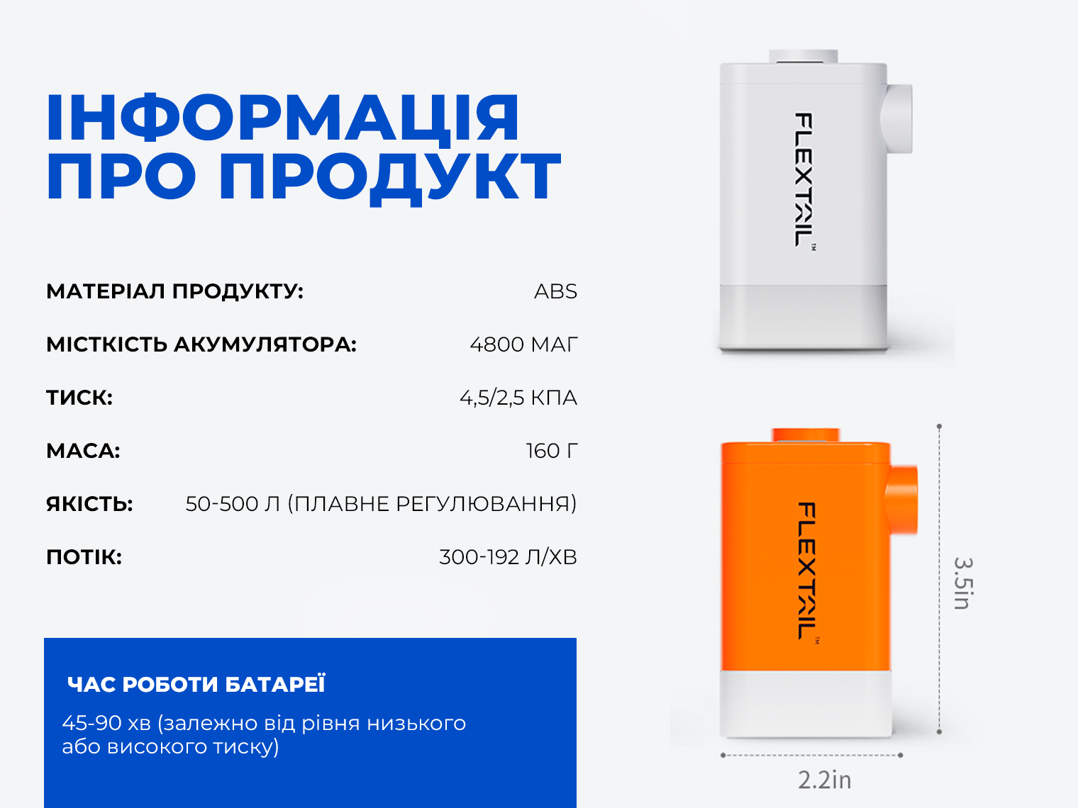 Опис кемпінгового насоса-ліхтаря-powerbank Flextail Max Pump 2 Plus, білого:
